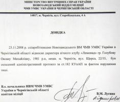 «В ходе проведенной городским отделом милиции проверки 4.09.09 обнаружено нарушение режима работы данного заведения, о чем относительно коммерческого директора ПП «Цитрус» Голубовой О. М. составлен соответствующий протокол.