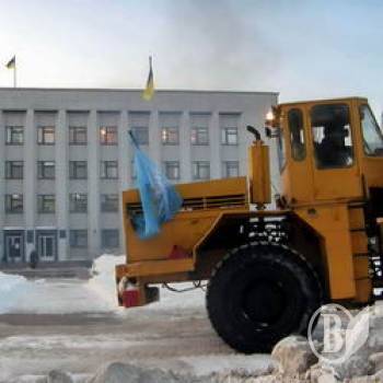По Чернигову «рассекает» трактор с флагом Партии регионов Украины. Этот трактор и раньше убирал снег в Чернигове, но теперь – под флагом.