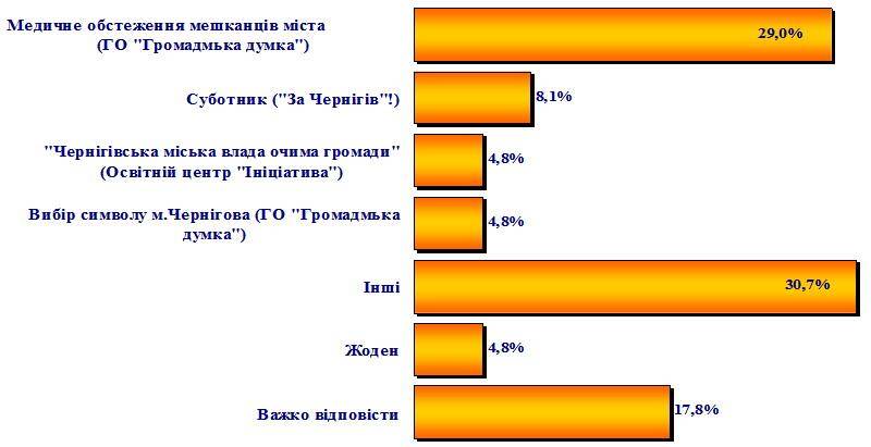 Проект Чернігівського освітнього центру ініціатива „Чернігівська міська влада очима громади” увійшов в трійку найбільш відомих проектів які реалізовувалися на Чернігівщині у 2009 році за наслідками опитування „Чернігівщина експертна 2009”, яке проводив „Поліський фонд міжнародних та регіональних досліджень.