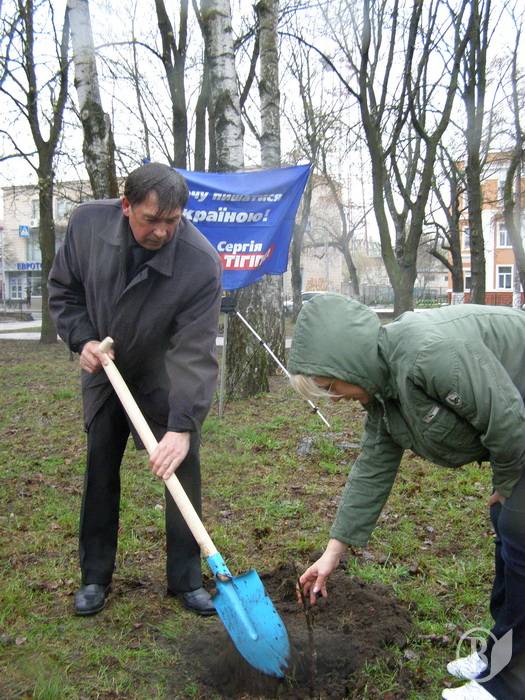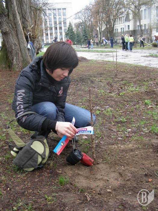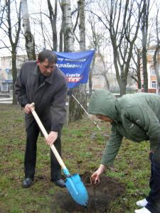 Активісти партії садили дерева за планом «Зеленбуду» у парку на проспекті Миру від Мегацентру до перехрестя з проспектом Перемоги.