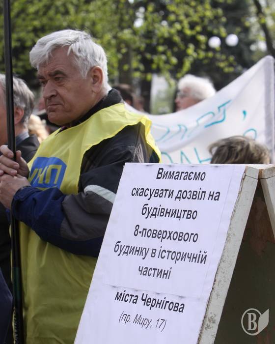 Ініціатором протесту виступила Чернігівська міська організація Української народної партії. За повідомленням прес-служби організації, дана територія відповідно до Генерального розвитку Національного архітектурно-історичного заповідника «Чернігів стародавній» відноситься до першої охоронної зони. Тут встановлені висотні обмеження щодо нового будівництва — не вище 15 метрів. Згідно «Детального плану території центральної частини м. Чернігова» в першій зоні також встановлені висотні обмеження для нового будівництва — до 5 поверхів.
