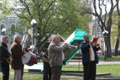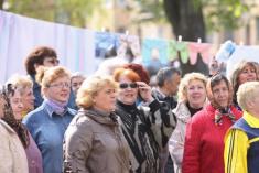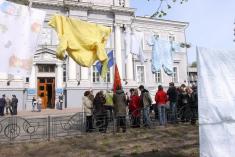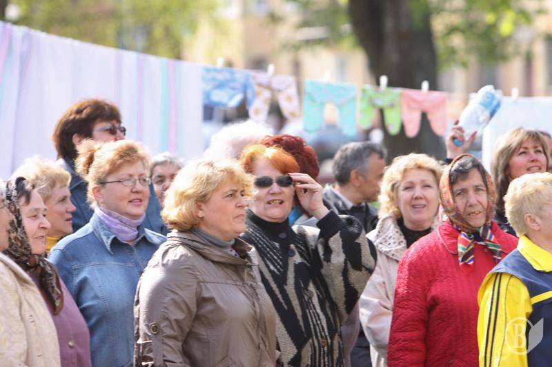 Оскільки їх подвір’я окупувала і огородила будівельна компанія, жителі тут же, під час мітингу в сквері навпроти міської ради розвісили сушитися дитячі речі.