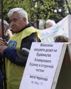 Сьогодні у Чернігові під сірими стінами міської ради протестували проти варварської забудови в історичній частині міста, на місці дитячого майданчика жителі будинків 17 і 17а, що на пр. Миру.