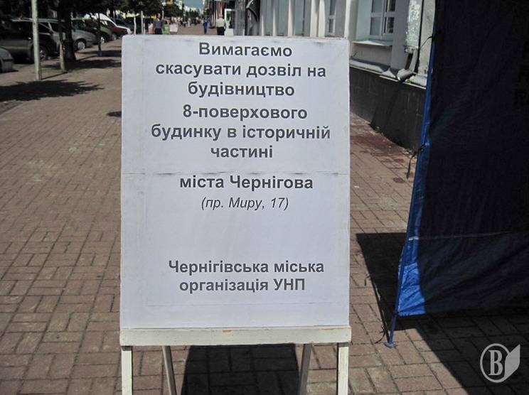 17 мая Черниговская городская организация УНП около строительной площадки установила палатки и провела акцию протеста.