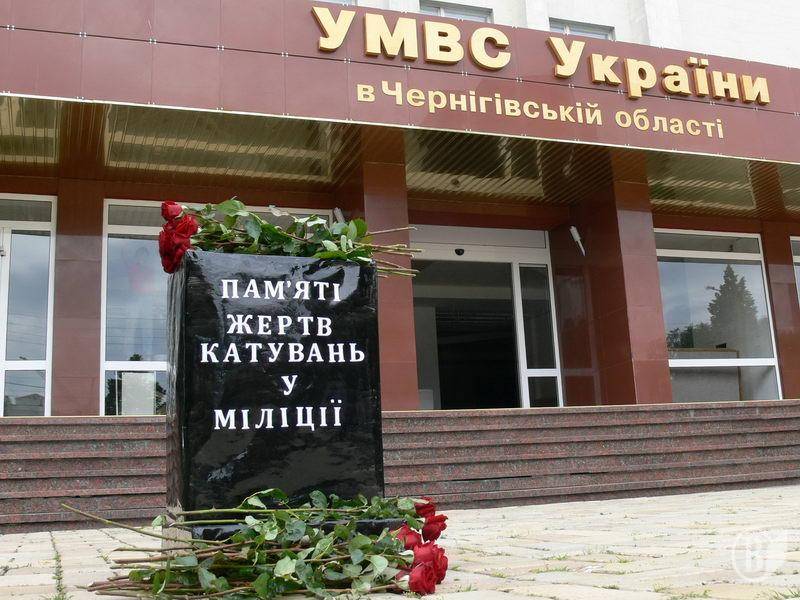 Чорна стела з надписом «Жертвам катувань у міліції» й більше сотні троянд з'явилися сьогодні перед входом до Управління МВС у Чернігівській області.