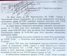б) прокуратура м.Чернігова;
