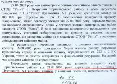 Кредит на 300 тисяч гривень, який взяв колишній голова СТОВ «Успіх» Пустовойт в банку «Аваль», у касу СТОВ не поступав. За даними М.Артеменко, на частину тих грошей була придбана нерухомість у Херсонській області. Де ж поділася решта тих кредитних грошей, йому невідомо.