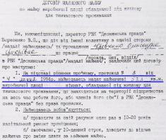 При цьому у договорі найму «виробничої площі, обладнаної під житлову», читаємо: «на підставі рішення профкому, протокол №3 від 4 липня 1994 року наймодавець надає наймачеві...». Підпис – директор РВК «Деснянська правда» В.П. Борисенко.