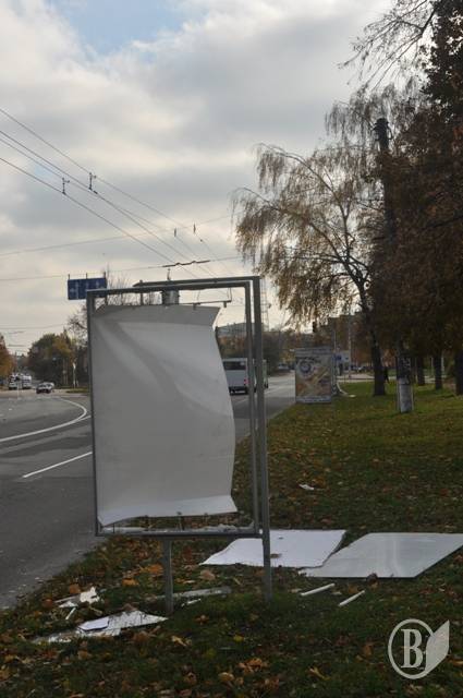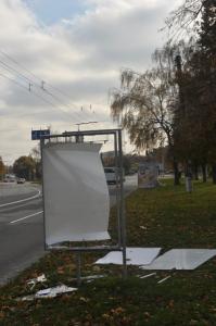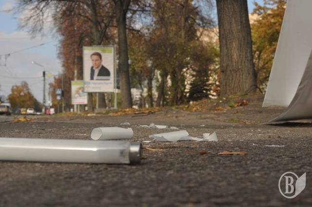 Купи побитого скла, рештки ламп денного світла, шматки паперу та голі металеві рами – все що залишилося від рекламних конструкції з підсвіткою, які стояли по обидві сторони дороги в районі готелю Градецький. Старалися так, щоб на місце розбитих вже повісити нічого не можна було. Як говорять очевидці, один з сіті-лайтів пошкоджений менше, ніж інші. Швидше за все хтось із перехожих завадив хуліганам завершити свою справу.