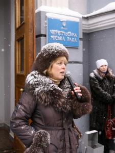 А голова профспілкової організації «Чернігівська профспілка підприємців» Олена Варнакова викладала вимоги торговців міському голові «в кулуарах» перед вікном.