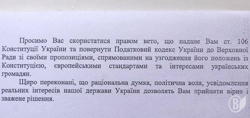 Олександр Соколов, Чернігівський міський голова, зачитав сьогодні звернення до Президента з проханням накласти вето на прийнятий Верховною радою Податковий кодекс.