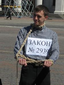 ЧОО ВМГО «Демократичний Альянс» і просто активні громадяни міста наочно показали, як В.Литвин фактично «зв’язує Закон по рукам». Метою заходу є висловлення громадського невдоволення і незгоди з можливим внесенням змін до Закону «Про доступ до публічної інформації».