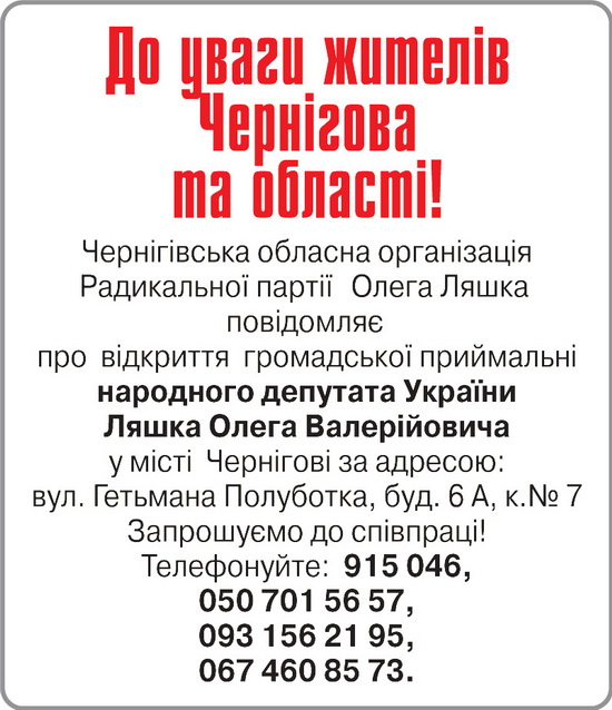 ОЛЕГ ЛЯШКО ВІДКРИВ ГРОМАДСЬКУ ПРИЙМАЛЬНЮ У ЧЕРНІГОВІ