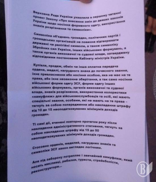Жителі міста протестували проти прийняття закону «Про внесення змін до деяких законів України щодо носіння форменого одягу, використання знаків розрізнення та символіки».