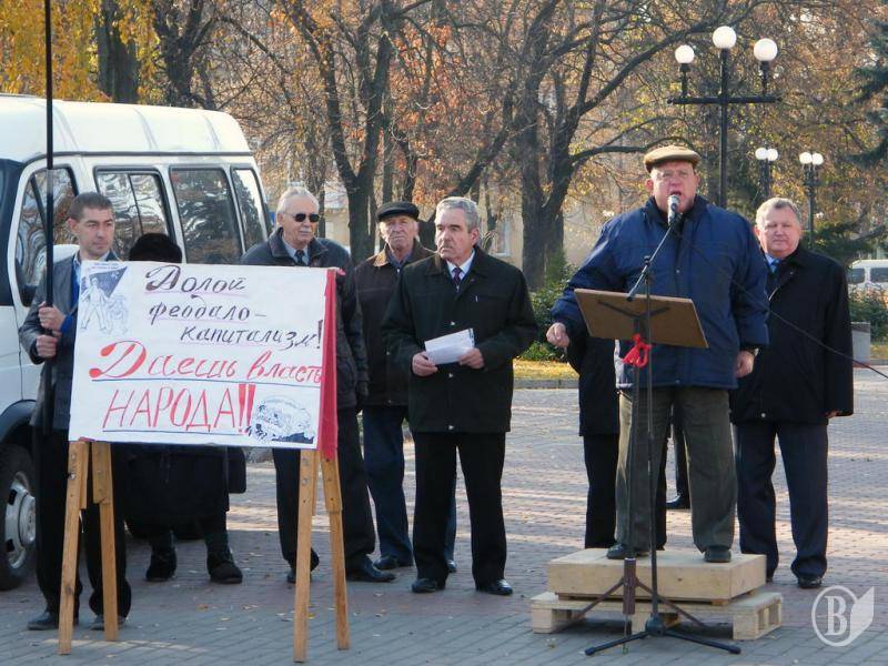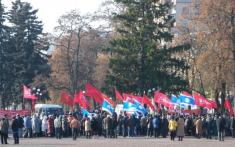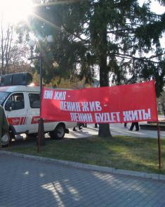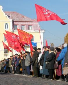 Чернігівські комуністи 7 листопада традиційно вийшли на демонстрацію до річниці жовтневого перевороту, скоєного у Петрограді в 1917 році. Ще б пак – традиція ж міцна, майже сторічна.
