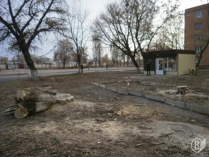 У той же час в 150 метрах від знищених дерев по вул. Ціолковського, 12 знаходиться покинутий багато років на поталу і грабунок магазин, що належав ліквідованому дивним чином ВАТ «Чернігівський плодоовочевий комбінат».