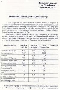 Також, хочеться всім нагади, що в нашому місті практично весь час найпершою піднімається вартість проїзду. В листі є порівняльна таблиця тарифів на проїзд по містам України, але питання в іншому, наше місто найбільше по кількості проживаючих, чи можливо у нас найбільший рівень оплати праці або найкраща якість перевезень??? Питання без відповідей…