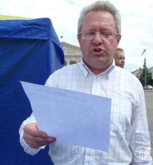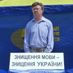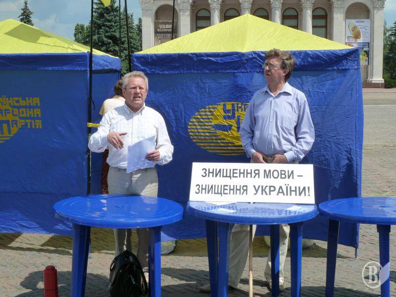 Модератор заходу голова обласної організації УНП Володимир Ступак нагадав журналістам та всім присутнім події, які змусили їх зібратися на прес-конференцію – протест під назвою «Знищення мови – знищення України».