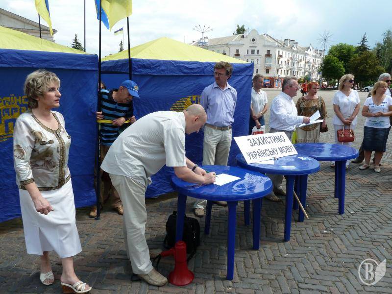 У Чернігові на Красній площі 30 травня 2012 року на імпровізовану прес-конференцію – протест під назвою «Знищення мови – знищення України» зібралися представники гуманітарної еліти обласного центру.Організатори: обласні організації Української народної партії та Товариства «Просвіта» імені Тараса Шевченка, інформує "Високий Вал" обласний осередок Української народної партії.