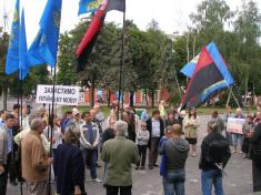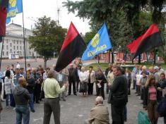 Іншу акцію запланували на 17.30. Там зібралися партійці: ВО «Свобода», КУН та УНП. До них долучилися небайдужі з громадських організацій, серед них і «Просвіта». Останні вирішили на своїх зборах їхати до Києва. Але ж час вдалий, робочий день закінчився. Можна встигнути й зі столичних акцій повернутися.