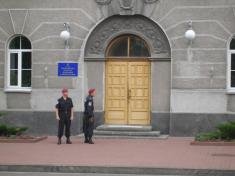 Зібралися на Алеї Героїв. Поблизу обласної держадміністрації. Будівлю охороняли кілька «людей в чорному».