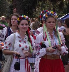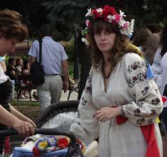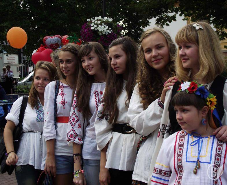 Російськомовні україночки роблять фото на пам’ять. Починаються конкурси. Тут нагороджують і старих і малих за національний одяг. Чого душа забажає.