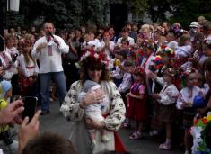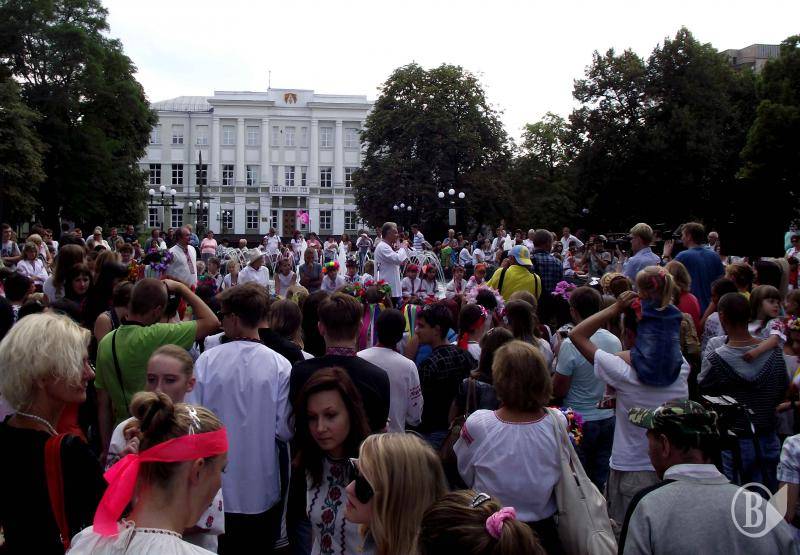 Вихователі садочків, вчителі шкіл разом з дітьми та учнями тут. У національному одязі. Щасливі і святкові. Не називаючи прізвищ вони бідкаються, що вишиванки довелося шукати у знайомих. Або планувати вихідні так, щоб встигнути на вишиванкове свято. Як ні, то на роботі матимеш проблеми.