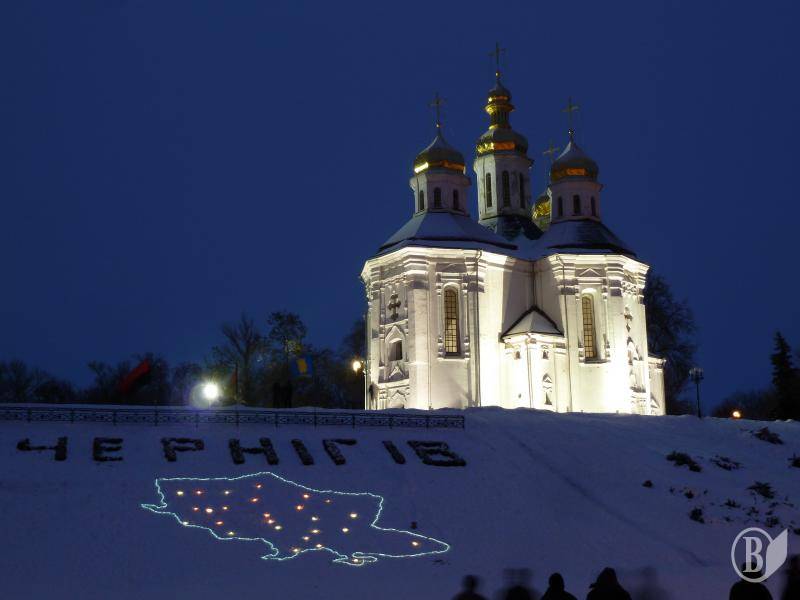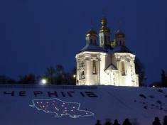Патріотичні організації Чернігова окреслили всі українські землі контуром з ліхтарів на в'їзді до міста.