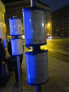 Елементарна річ – сповісти всіх пасажирів про дійсний графік руху того чи іншого автобусу. Оскільки далеко не зажди він дотримується і нема розуміння в певний час доби - виїдеш ти з однієї частини міста в іншу чи ні. В тому ж Брюсселі цю проблему вирішили достатньо простим і недорогим способом – розмістивши на зупинках невеличкі пластикові інформаційні стенди. (фото 3) Проте тимчасовим вирішенням питання може бути розміщення цих же розкладів в автобусах. Тобто в кожному автобусі свій розклад руху. Прикладом може слугувати автобус №1, в салонах якого розміщені прості зрозумілі таблиці з графіком руху на день.