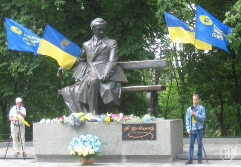 Особливістю цьогорічного вшанування Тараса Шевченка в Чернігові стало те, що прапори НРУ та УНП були зв'язані синьо-жовтою стрічкою, що символізувало недавнє рішення обох партій про об'єднання.