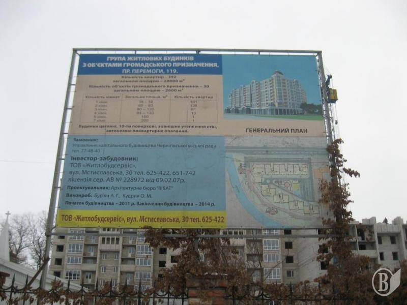 Однак, замість «реконструкції русла» Стрижня на цій ділянці, як обіцяла міська влада, на початку літа 2011 року відбулися скандальні вирубки дерев під забудову від проспекту Перемоги до вул. Г. Полуботка. Сьогодні тут, на березі Стрижня, ТОВ «Житлобудсервіс» збудовано мікрорайон 10-типоверхових офісно-житлових будинків. Це – 392 квартири, загальною площею у 28000 кв. метрів та приміщення громадського призначення, загальною площею у 2600 кв. метрів. Вартість збудованого складає щонайменше 10-15 мільйонів доларів США.