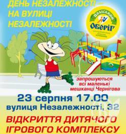 Благодійний фонд Владислава Атрошенка «Оберіг» запрошує маленьких чернігівців разом з батьками 23 серпня о 17 годині на вулицю Незалежності , 32 у мікрорайоні Масани міста Чернігова на відкриття дитячого ігрового комплексу .