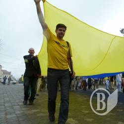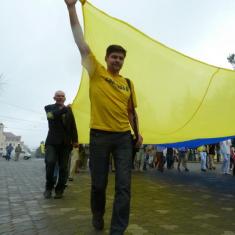Свободовцы по случаю праздника пошили флаг 6х9 метров, которые несли участники марша.
