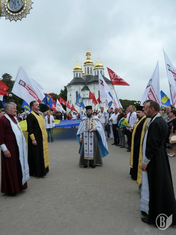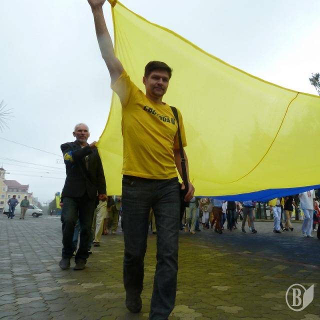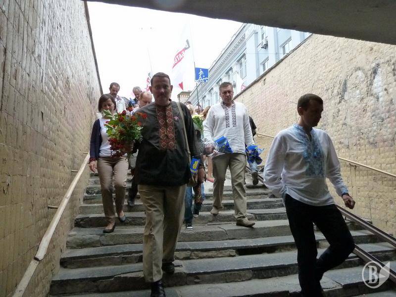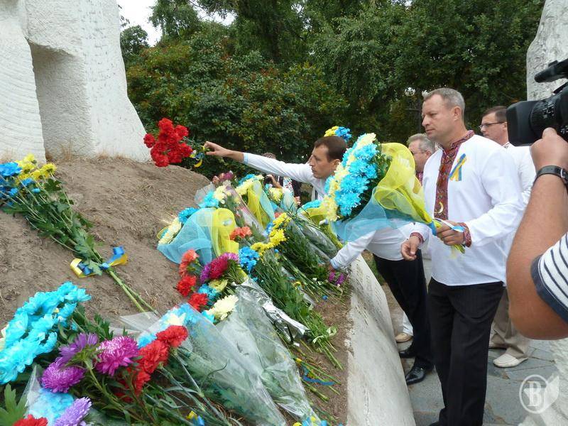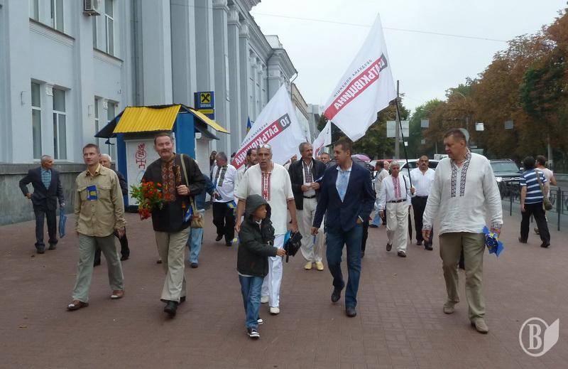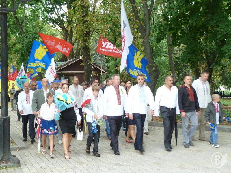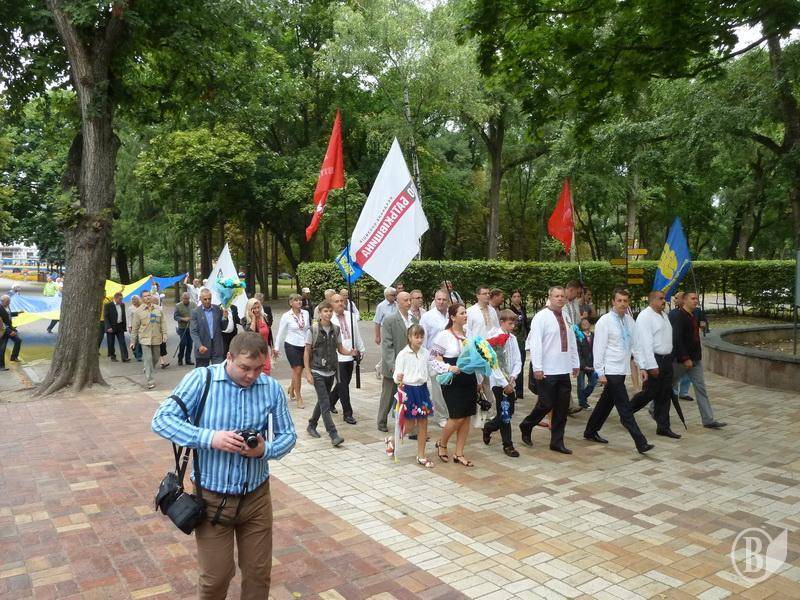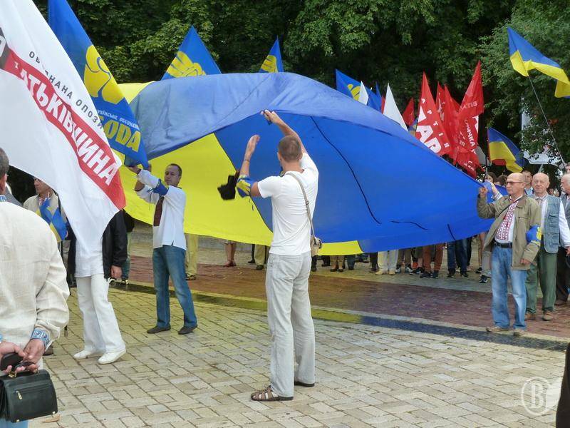 Как всегда бывает в День независимости, официальные и оппозиционные мероприятия были размежеваны во времени и пространстве. Во время оппозиционного марша флаги Партии регионов реяли около памятника борцам за независимость. Поэтому оппозиционеры решили сначала посетить Кобзаря, к подножию которого были возложены цветы. А торжественную речь произнес Сергей Аверченко. Лейтмотив выступления - Кобзарь мог 22 года уже спать спокойно, но пока еще спокойные сны несвоевременны.
