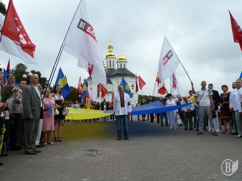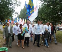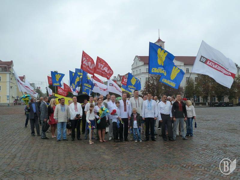 День Независимости в Чернигове представители Всеукраинского объединения"Свобода","Батькивщины"и Удара отметили пешим парадом от Главпочтамта до памятника Кобзарю и борцам за независимость.