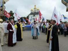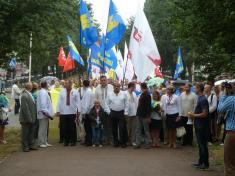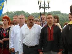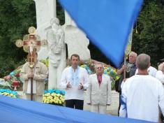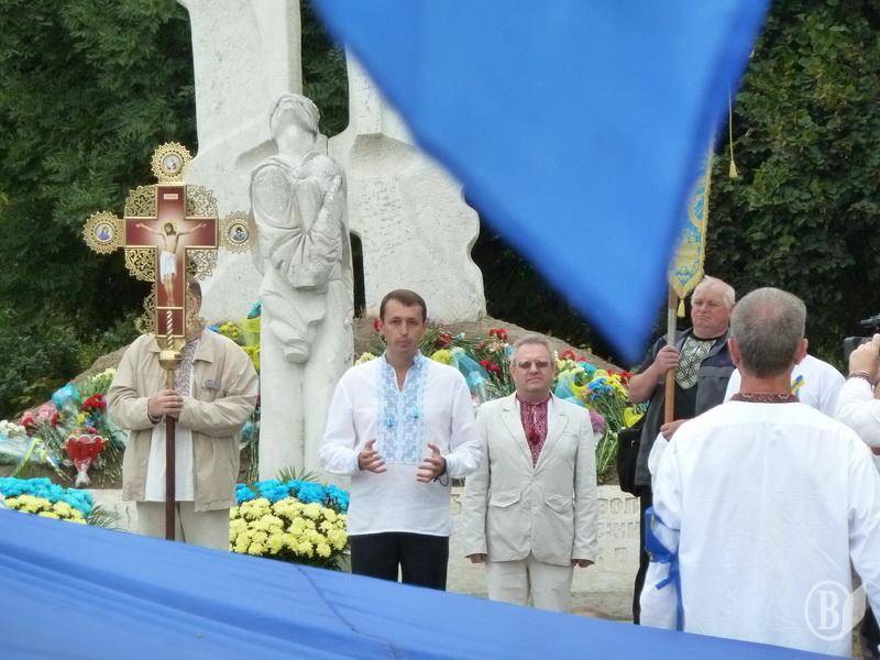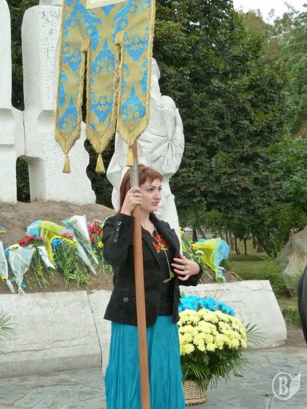 Около памятника борцам за независимость участников пешего марша ожидали представители объединенного Руха, а священослужители Киевского патриархата провели молебен. На митинге выступил глава черниговского Руха Владимир Ступак, депутат Верховной Рады Валерий Дубиль, общественные деятели, представители Всеукраинского объединения "Свобода".