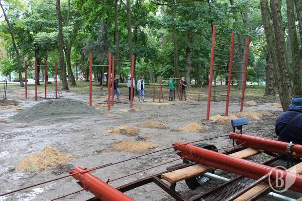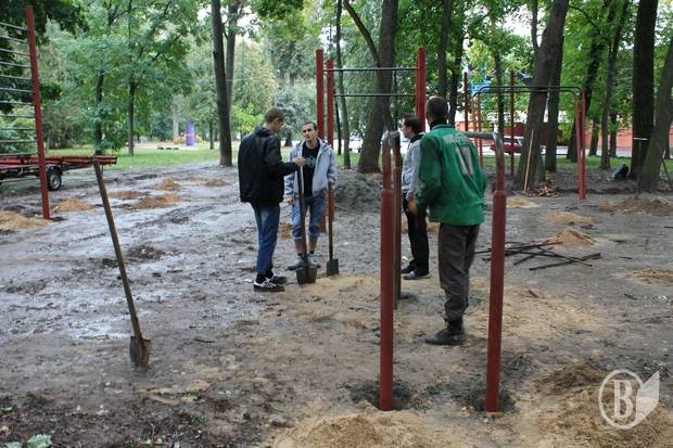 Работы по установлению спортивных снарядов в городском парке начались 4-го сентября. Оборудоваными площадками молжно удовлетворить всех почитателей здорового образа жизни. Турники, параллельные брусья, рукоходы, балансиры, шведская стенка, – всего 18 снарядов изготовлено за средства Благотворительного фонда «Полесский оберег» Владислава Атрошенко.