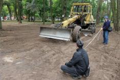 На территории Черниговского центрального парка культуры и отдыха, напротив Летнего театра, работают люди и техника.
