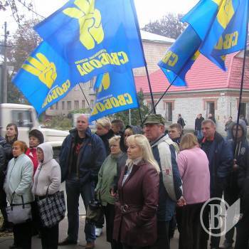 Активісти Всеукраїнського об'єднання "Свобода" 10 жовтня разом з представниками інших опозиційними силами провели пікетування Головного управління Державної скарбничої служби України в Чернігівській області.