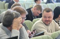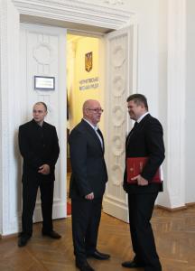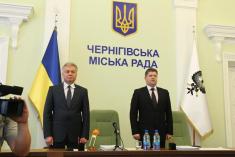 С трибуны сессионного зала черниговского горсовета после открытия тридцать пятой сессии шестого созыва депутаты от «Батьківщини» и КПУ Русин и Петрущенков выступили с речами о евроинтеграции.