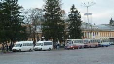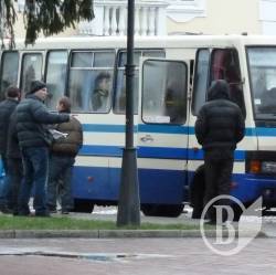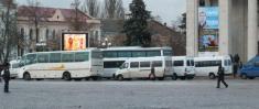 Колонна автобусов с табличками «Чернигов-Киев» выстроилась на центральной Красной площади города.