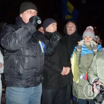 Вечірній майдан у Чернігові біля йолок у сквері імені Попудренка біля Красної площі, незважаючи на різке похолодання повітря, був найбільш масовим за всі дні - біля тисячі людей прийшли підтримати радикальні вимоги української опозиції по европеревантаженню регіональної влади в країні.
