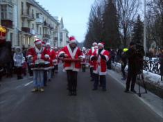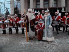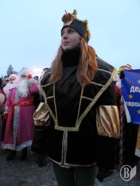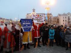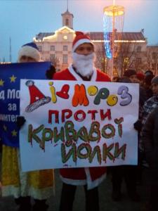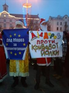 Чернігівські Діди Морози в Чернігові тримали в руках плакати «Дід Мороз проти кривавої йолки» та «Дід Мороз за євроінтеграцію».