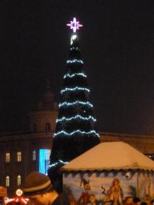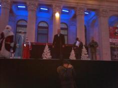 Ведучі зі сцени про просоли звернути увагу на ялинку та через «звукопідсилюючу» апаратуру, новий 2014 рік наказав ялинці запалитися.