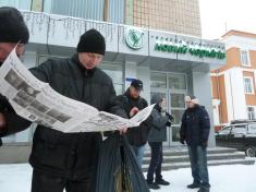 Трудящі, депутати міської ради і журналісти радо зустріли Петра Симоненка гаслами "Вон из города!" і "Банду геть!".