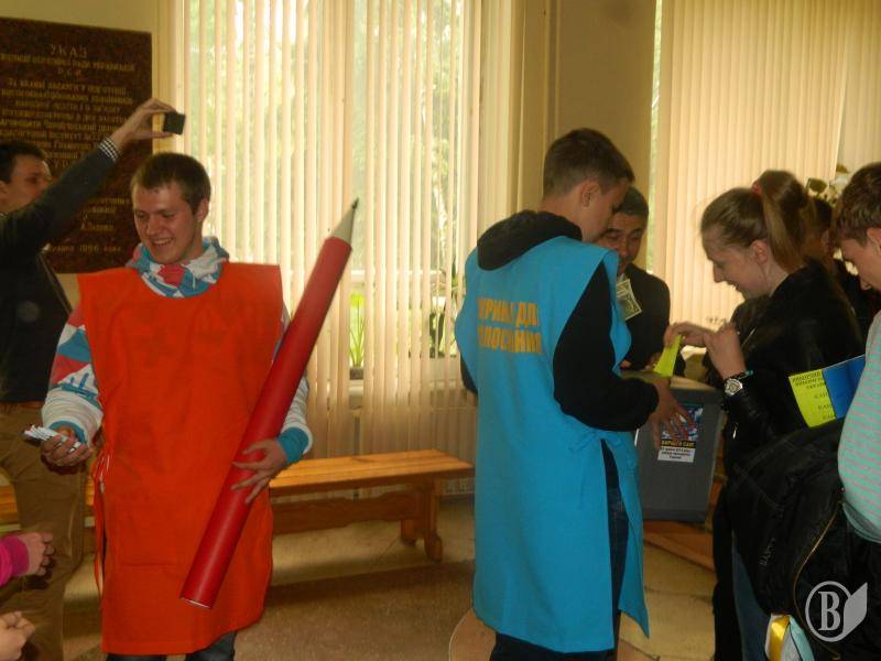 Студентам ЧНПУ було надано імпровізовані бюлетені із порядковими номерами замість прізвищ кандидатів, а також запропоновано продати свій голос за сувенірні купюри різних номіналів.