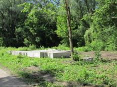 Работники «Укрсивербуд» огородили место будущей застройки бетонными плитами, прямо под детской площадкой. Рубить деревья пока не решились, однако, как оказалось, имеют на это законные основания.