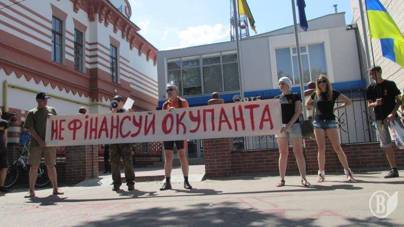 Це вже не перший подібний протест у Чернігові: раніше пікетували та пошкоджували відділення Сбербанку Росії.