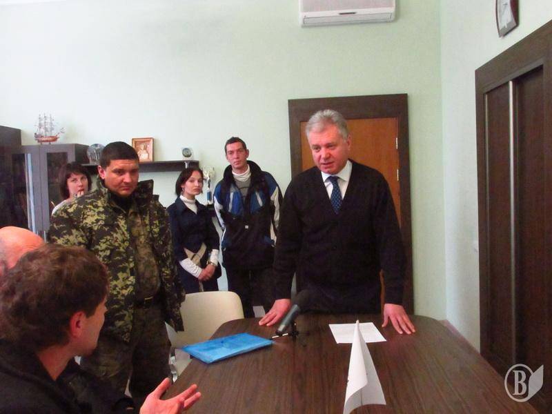 Перед початком чергової сесії міської ради 28 листопада представників військові із зони АТО відвідали кабінети міського голови Олександра Соколова і секретаря Владислава Кухаря.