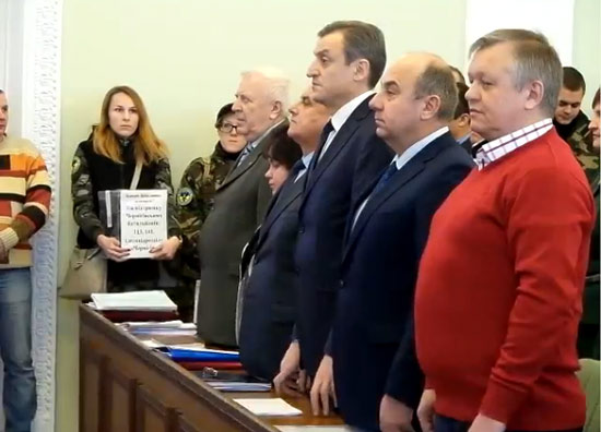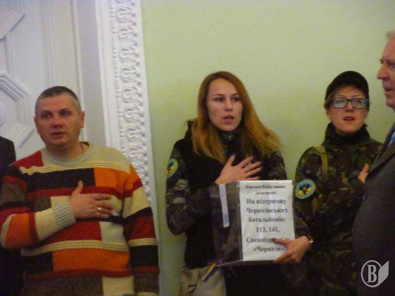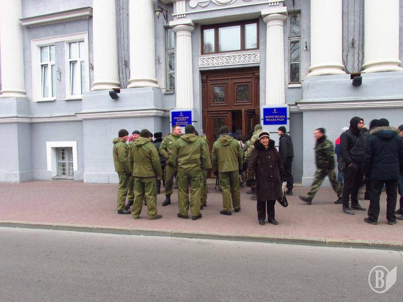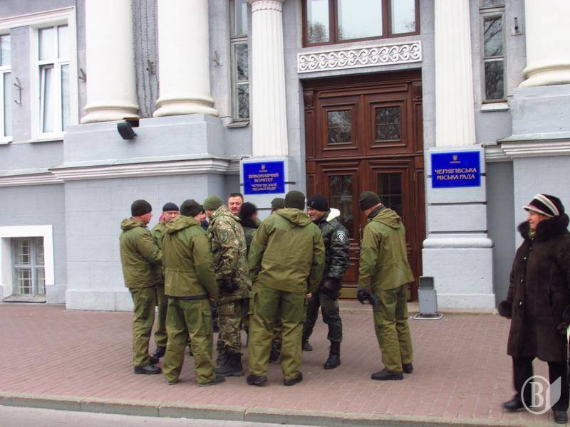 У міськраді знаходяться представники 41-го і 13-го батальйонів і спецбатальйону міліції «Чернігів» та інші громадяни міста.